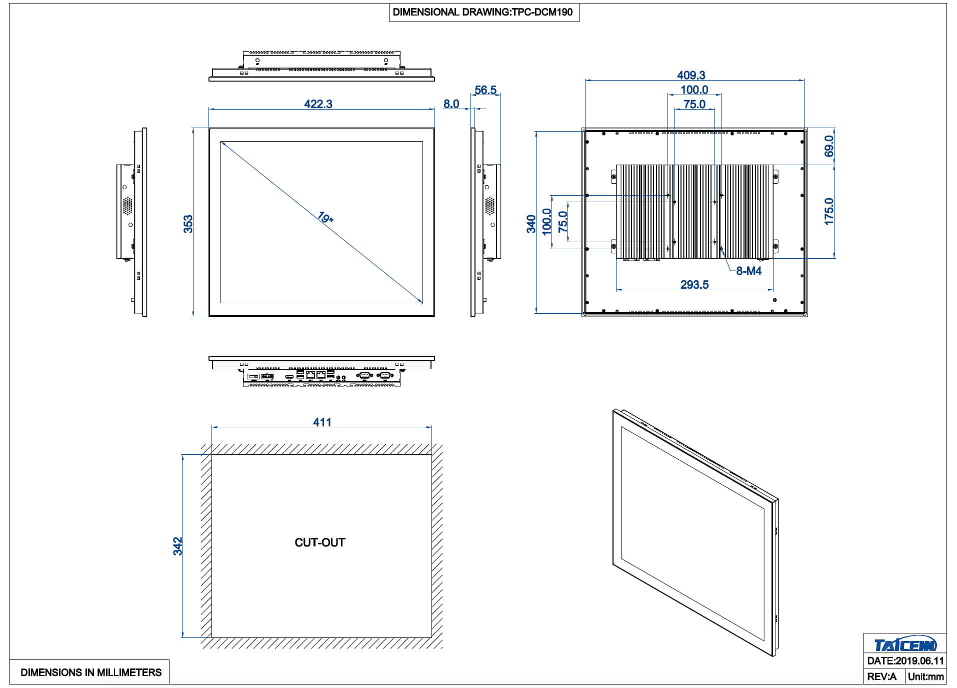 Le TB19V2 est un panelPC industriel encastrable de 19“ disposant d’une face avant totalement place et d’une dalle tactile de technologie PCAP. Le TB19V2 peut soit s’encastrer, soit être utilisé avec un support VESA 75 /100. Sa face avant est étanche selon la norme IP66.