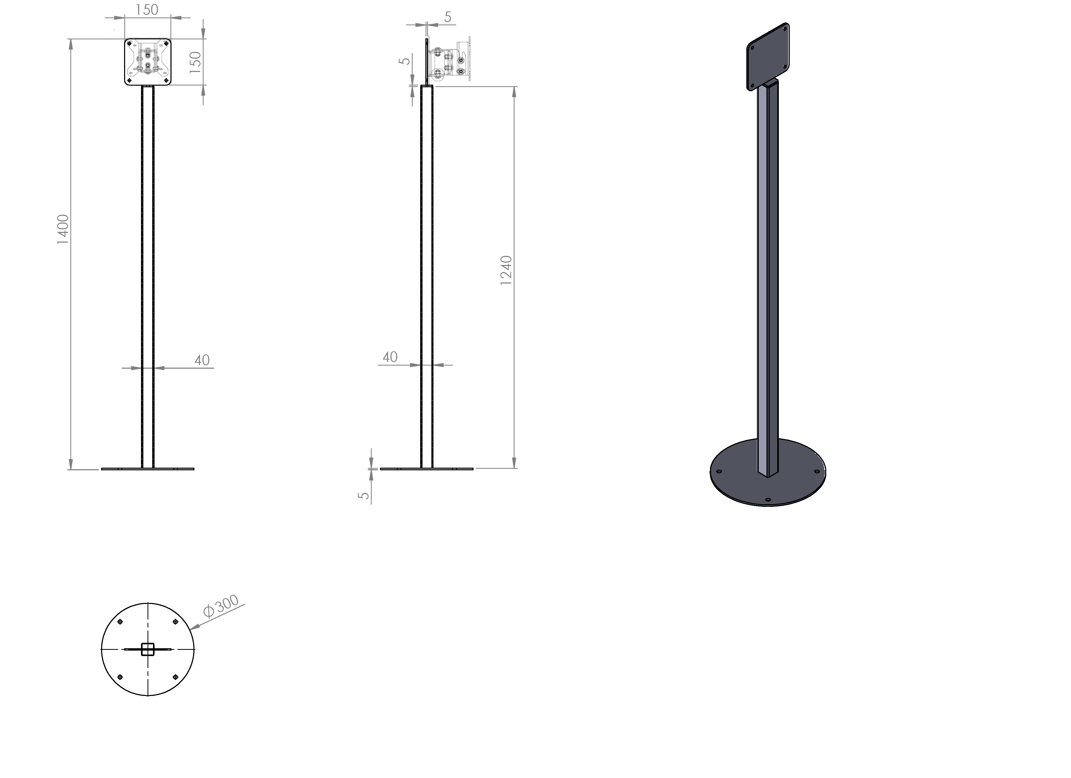 Colonne VESA 75 & 100 • Jusqu'à 20 Kg • Taille et matière sur mesure
