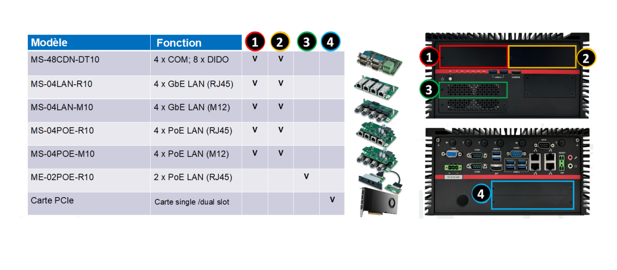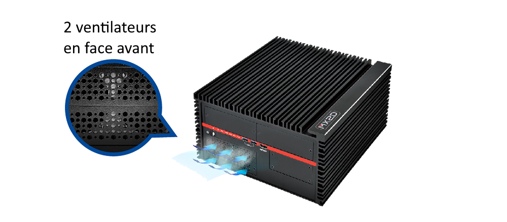 Le MX2-D est un ordinateur compact et puissant , basé sur le chipset INTEL R680E supportant les processeurs INTEL CORE de 14ème génération ( 35 Watts / 65 Watts ) . Il equipé de 2 ventilateurs pour assurer un refroidissement optimal, y compris lorsqu'une carte GPU 120 Watts est utilisée. Le MX2-D dispose d'un slot PCIe x16 ( Single / double slot ) , ainsi que de 4 slots d'extensions propriétaires ( Xpansion ) . Le MX2-D peut être alimenté en DC ou en AC, avec un adaptateur fourni. Il peut accepter les cartes GPU comme les NVIDIA RTX4060 ou RTX4000 SFF ADA.