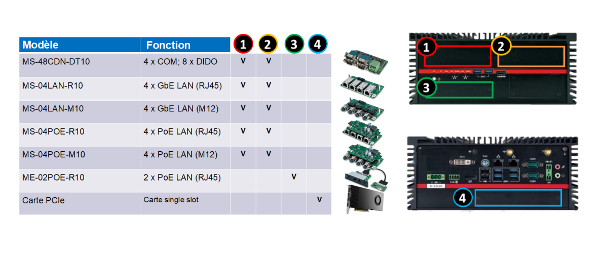 Le MX2 est un ordinateur compact et puissant , basé sur le chipset INTEL R680E supportant les processeur INTEL Core I9/ Core I7 de 14ème génération ( 35 / 65 Watts ) . F Le MX2 dispose d'un slot PCIe x16, ainsi que de 3 slots d'extensions propriétaire ( module Xpansion ). Le MX2 peut être alimenté en DC ou en AC, avec un adaptateur fourni.