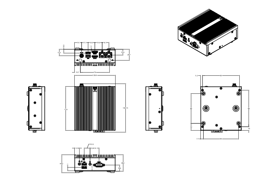 L'ordinateur SLIMBOX V6 est ultra compact et très puissant, basé sur la dernière génération de processeur INTEL Alder Lake. Le SLIMBOX V6 est équipé d' un port RS232 et 2 ports RJ45. Il dispose aussi de 4 ports USB 3.2.