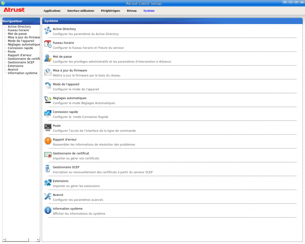 Les clients peuvent bénéficier des avantages de l'installation automatique, de la configuration et de la gestion centralisée, grâçe a l'outil ATRUST Device Manager , solution de supervision très complète proposé gratuitement. Le système d'exploitation ATRUST est utilisable avec l'ensemble des solutions proposées par EALTEC
