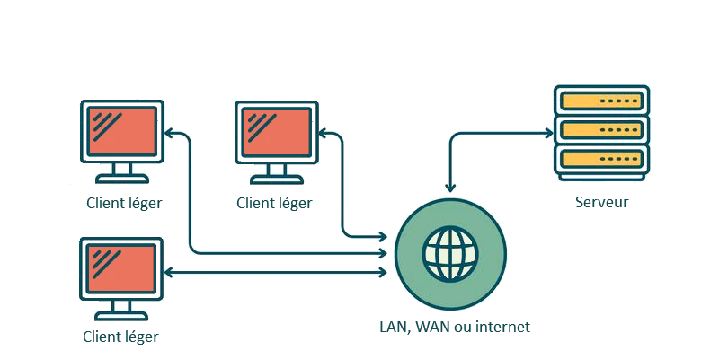 La virtualisation ( gestion de client léger ) offre une nouvelle perspective pour reconsidérer la conception et mise en œuvre d’une infrastructure informatique. Dans une infrastructure de virtualisation de postes de travail, une station n’est plus un poste de travail encombrant, mais simplement un poste de travail Terminal permettant aux utilisateurs d’accéder aux services à partir du ou des serveurs. Avec l’introduction des technologies de virtualisation des postes de travail, vous bénéficiez des avantages suivants :
